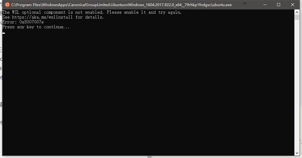 但是,这个时候会发现,不能用提示没有打开WSL,需要启动后重试