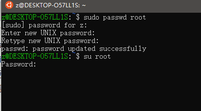 先输入刚刚设置的用户密码,然后两次输入要设置的root用户密码