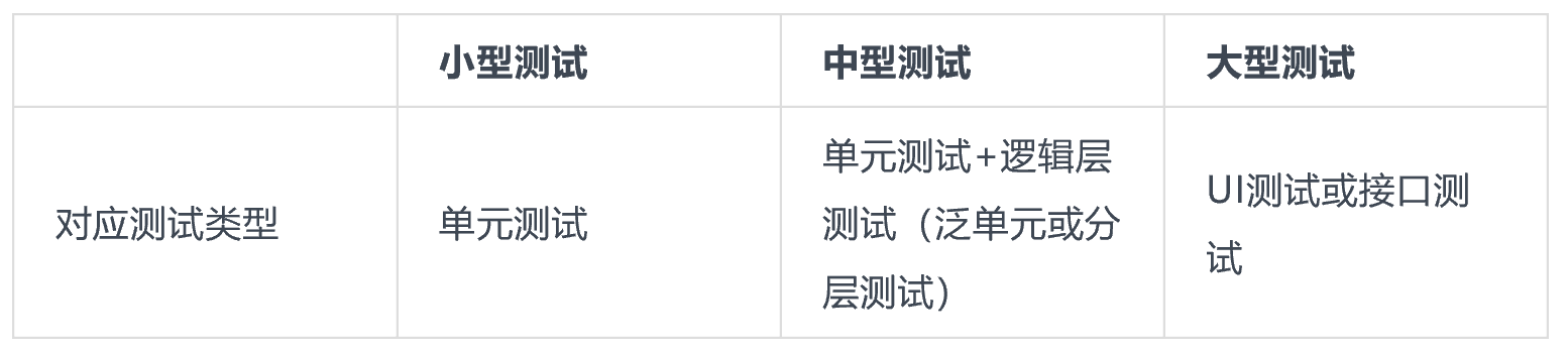 - 大型测试,也被称为“系统测试”或“端到端测试”。大型测试在一个较高层次上运行,验证系统作为一个整体是如何工作的。