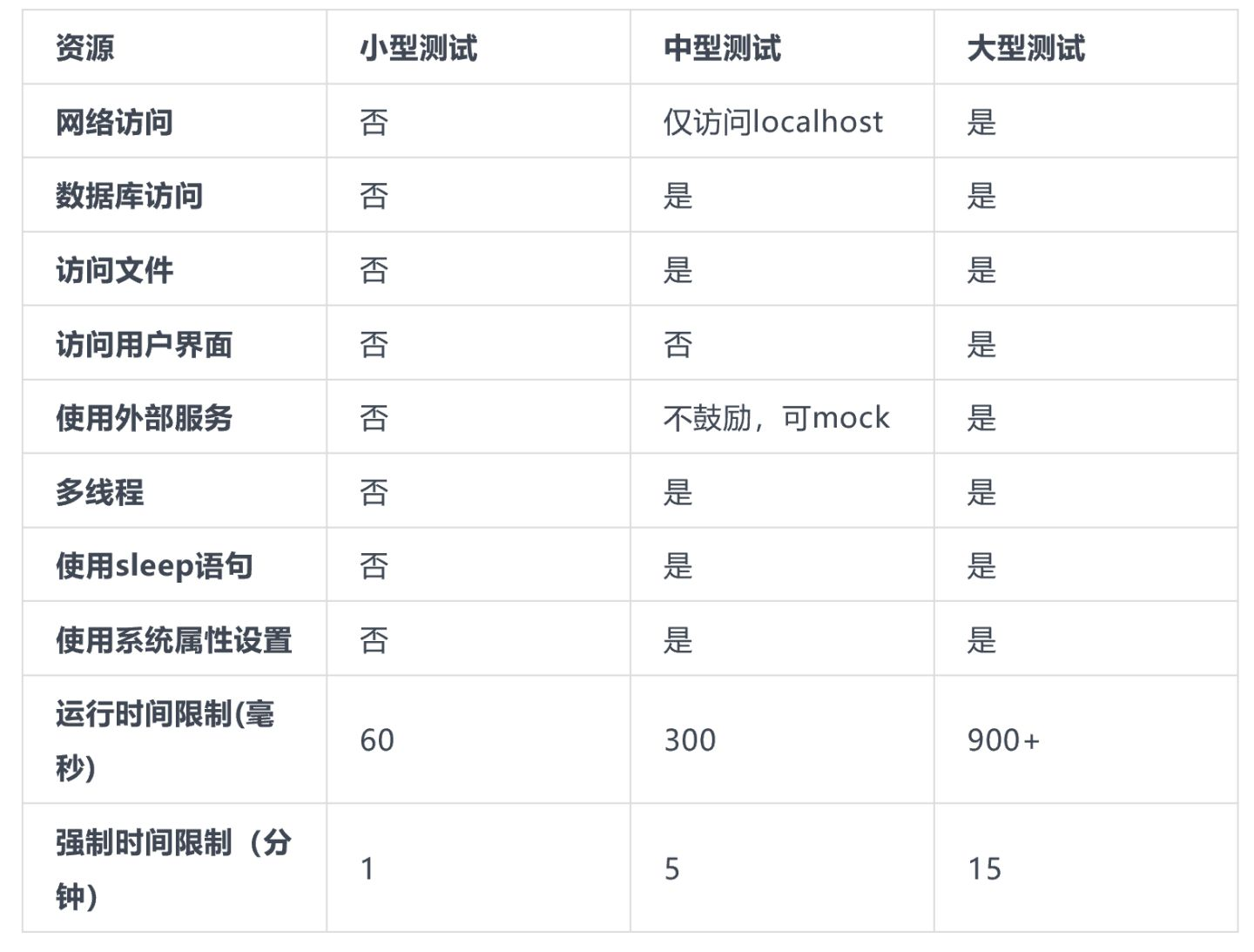 - 小型测试,针对单个函数的测试,关注其内部逻辑,mock所有需要的服务。小型测试带来优秀的代码质量、良好的异常处理、优雅的错误报告