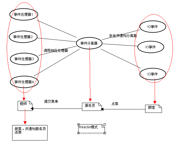 Reactor实现了一个被动的事件分离和分发模型,服务等待请求事件的到来,再通过不间断的同步处理事件,从而做出反应;
