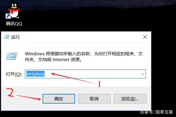 2、在运行窗口输入框中输入【netplwiz】或【control userpasswords2】并点击确定,如下图所示: