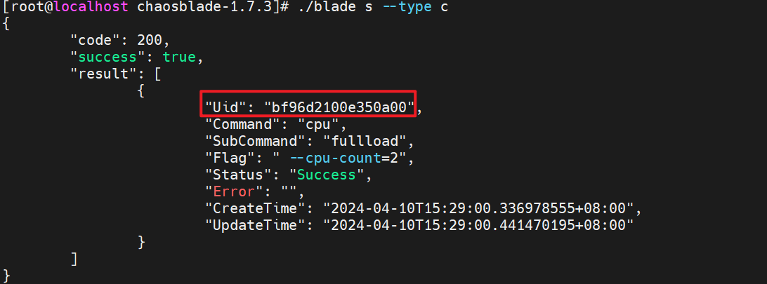 执行成功,会返回一个Uid,如需撤销故障注入,执行如下命令