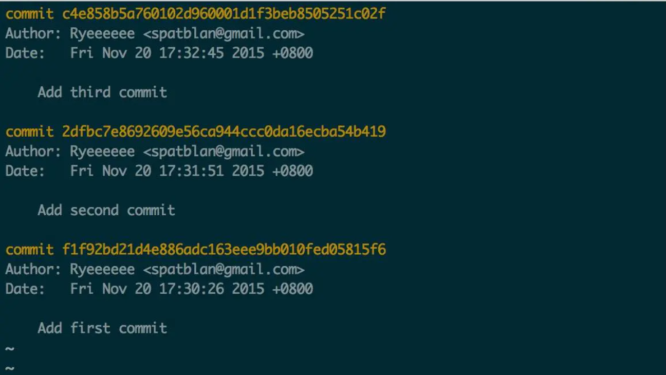 输入wq保存并推出, 再次输入git log查看 commit 历史信息。