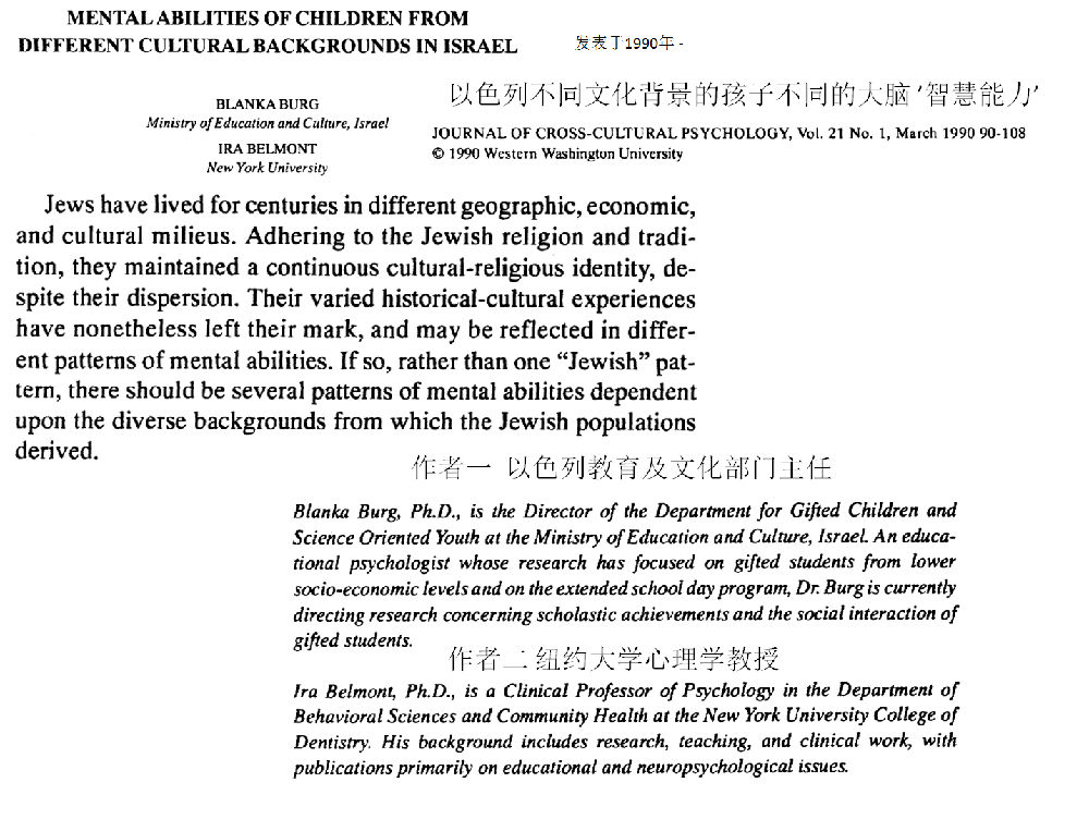 不同民族的 mental ability 是不一样的,在犹太人内部也是一样