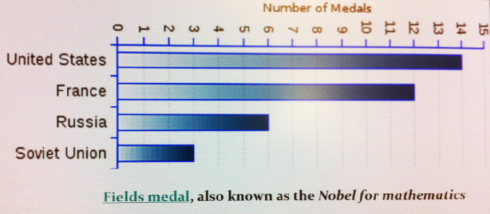 <<<< 俄罗斯特别出现了几位非常杰出的60后天才数学家。除了大家都知道因为证明 Poincare 猜想而闻名于世的俄罗斯数学天才 Grigori Perelman (1966年生),还有 Maxim Kontsevich (1964生), Andrei Yuryevich Okounkov (1969生),Stanislav Smirnov (1970生)等几位天才数学家,他们都是 Fields 奖获得者,尤其是M axim Kontsevich 由于在数学物理多个领域的杰出贡献,而几乎囊括了世界上数学上所有的大奖。他1997年获 Poincare奖,1998年 Fields奖,2008年Crafood奖,2012年 Shaw (邵逸夫)奖/ Fundamental Physics Prize,及 the Breakthrough Prize in Mathematics in 2014.>>>