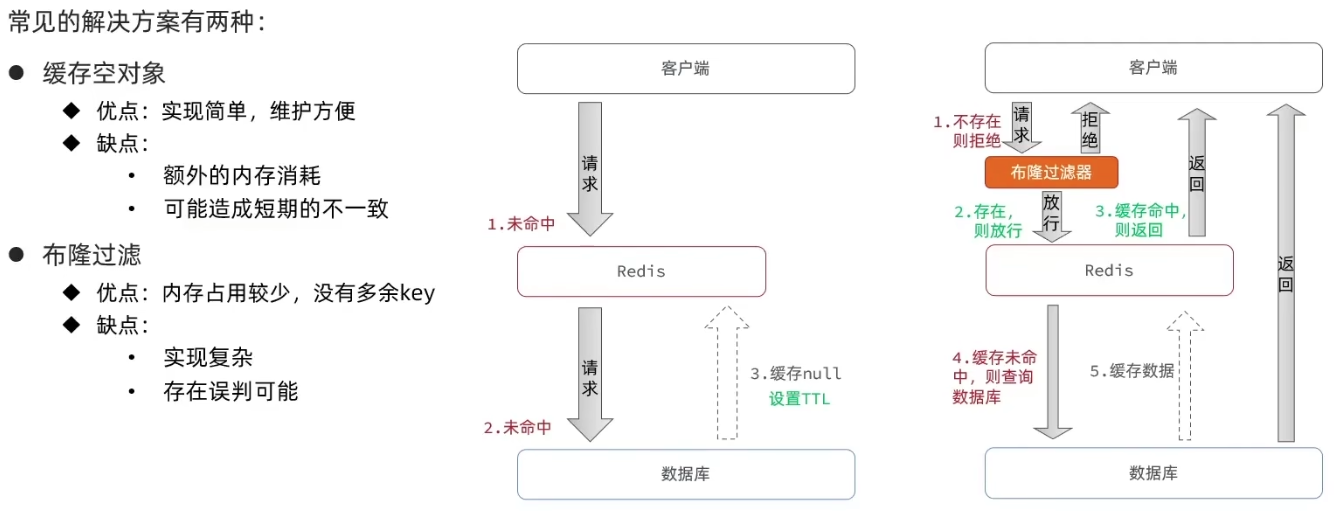 - 布隆过滤:在客户端和 Redis 之间增加了布隆过滤器;当布隆过滤中没有数据的时候,就会直接禁止流程继续执行(禁止访问 Redis 和数据库)