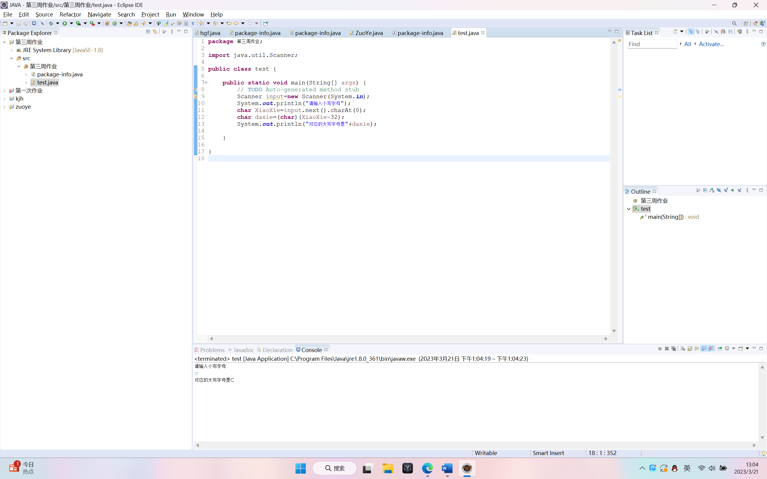 6定义一个任意的大写字母A~Z,转换为小写字母(知识点:变量和运算符综合应用)