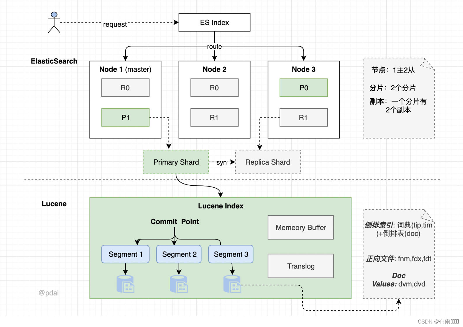 Elasticsearch 索引一个文档(document)主要有两个过程组成,示意图如下