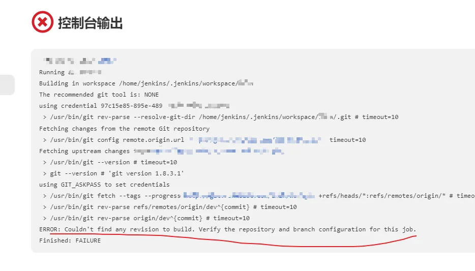 检查git凭证是否正确,ssh服务器是否正确,分支是否存在****