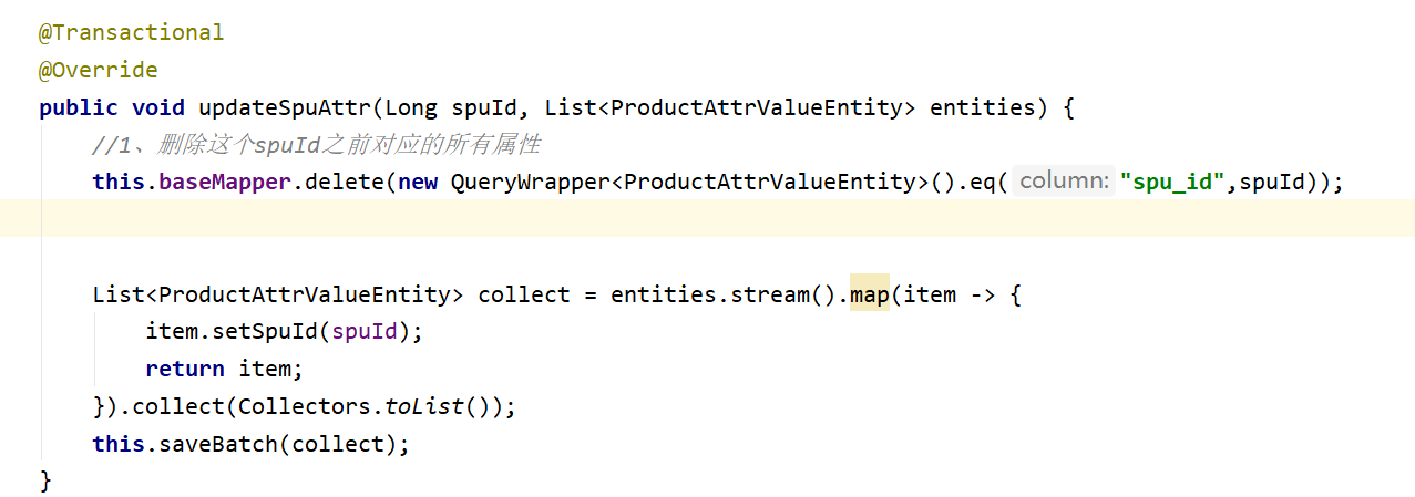 修改某个spu的属性值,把原有的属性值全部删除,然后重新添加