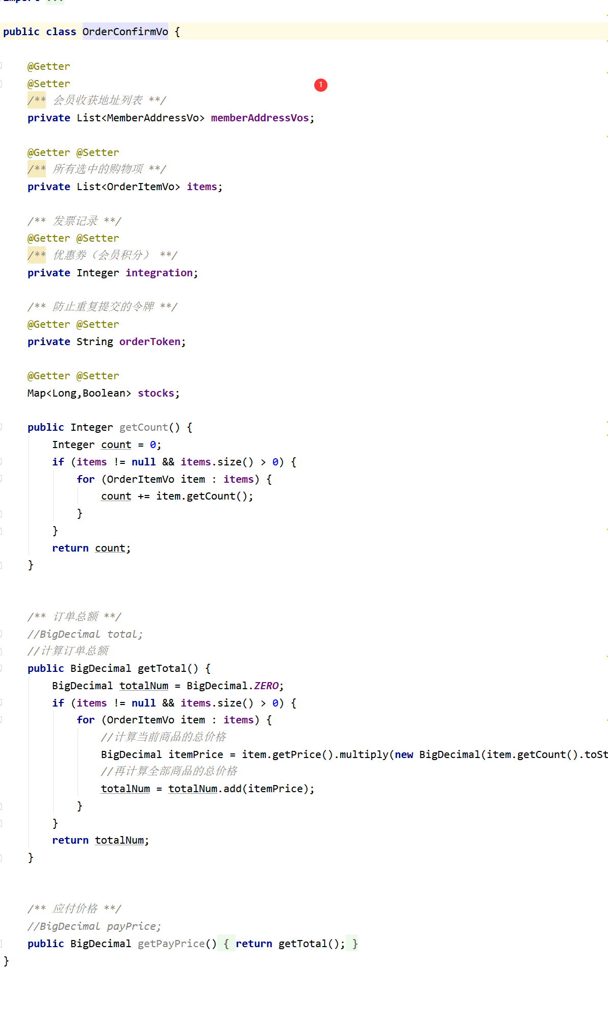 OrderConfirmVo,只需要封装这个类的对象再返回给确认页面就可以
