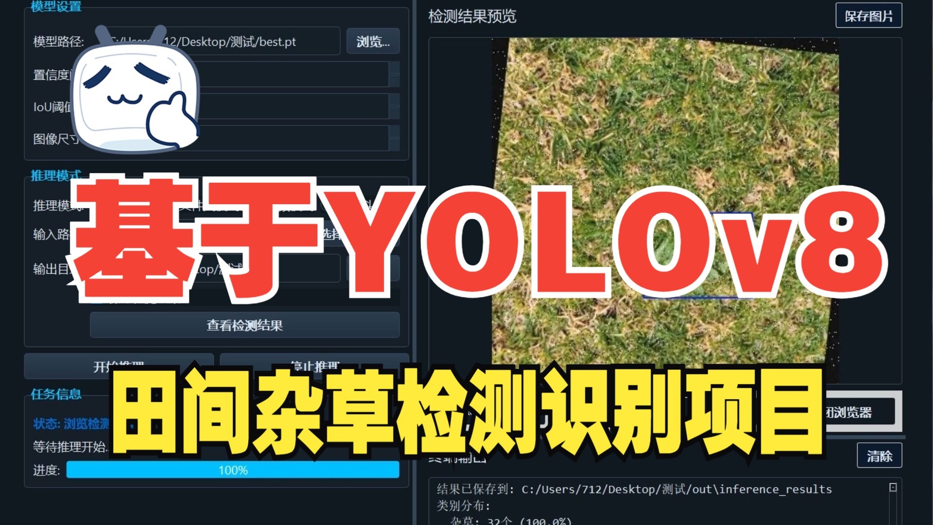本项目通过集成 YOLOv8目标检测模型 与 PyQt5图形化界面系统,实现了对田间杂草的高效识别与可视化检测,具备良好的实时性与实用性。无论是科研教学、农业智能化试点,还是毕业设计与工程应用,均具有良好参考价值。