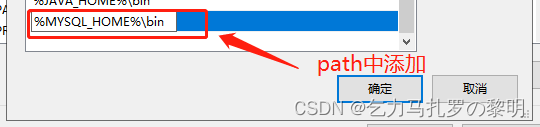 复制%MYSQL_HOME%\bin到原有值的后面,如图: