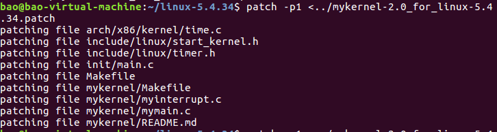 用 mykernel-2.0_for_linux-5.4.34.patch 对 内核文件进行更新