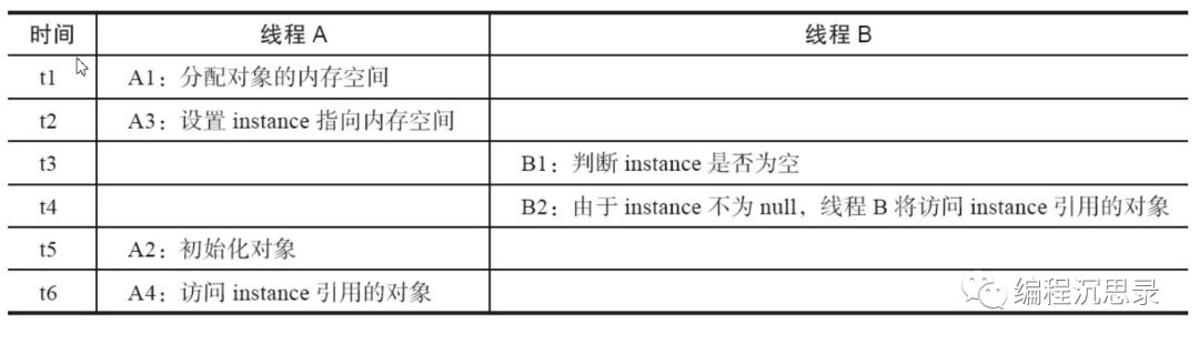 上述的三行代码的第2跟第3行代码可能发生重排序。2跟3重排序后,初始化的过程如下: