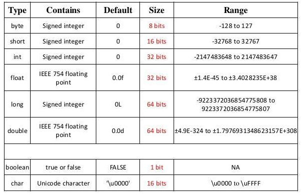 | 封装类 | Boolean | Byte | Char | Short | Integer | Long | Float | Double |
