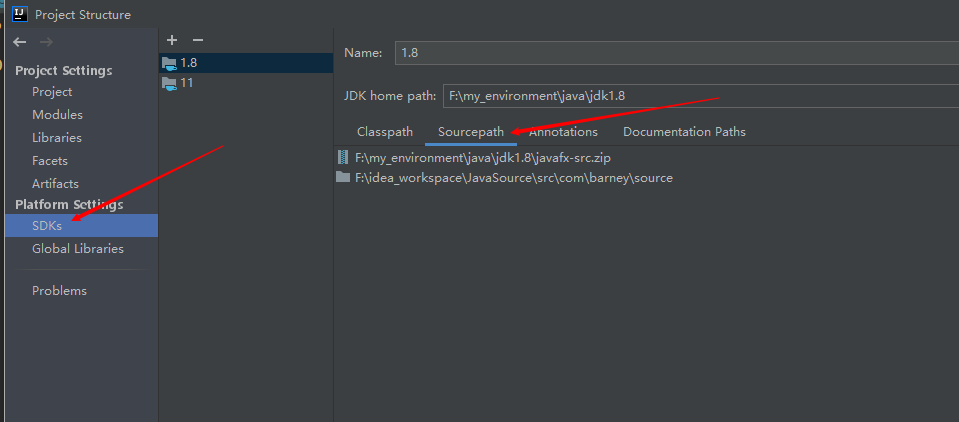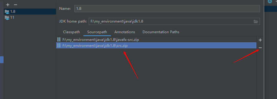 - 选中选来的源码,然后点击"-",移除原来的源码位置配置