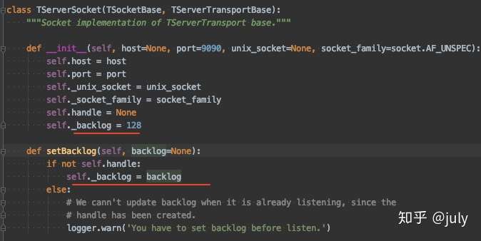 以上就是主要的 python 版 thrift 服务模型介绍。需要注意的是 socket.accept()从全连接队列拿连接,连接队列(全连接和半连接)总大小在 thrfit 里默认是128,可修改。