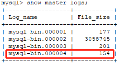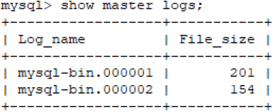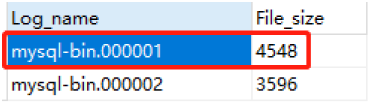4)、查看所有 binlog 日志文件列表:show master logs; 或者 SHOW BINARY LOGS;