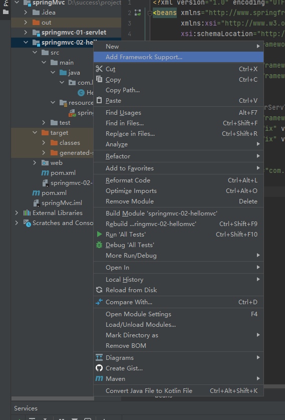 然后右键点击项目,选择add framework support,勾上web的支持。