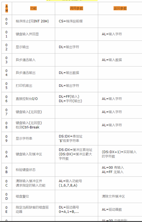 int 21h中间会有个mov dl,xxx(xxx为数据)
