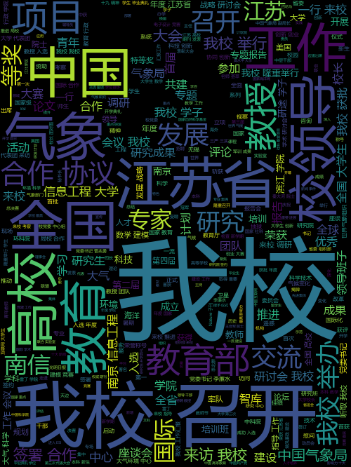 # -*-coding:utf-8 -*- from selenium import webdriver import wordcloud #词云制作器 import jieba#强大的中文分词库 from scipy.misc import imread#读取图片 import time url='https://news.nuist.edu.cn/main.htm' news=webdriver.Chrome() news.get(url) def getnews(): raw="" news.find_element_by_link_text('+更多').click() for n in range(1,60): news.find_element_by_class_name('pageNum').send_keys(str(n)) news.find_element_by_class_name('pagingJump').click()#换页读取 boxes=news.find_elements_by_xpath('//span[@class="col_title"]/a[@target="_blank"]')xpath读取新闻标题 for box in boxes: raw+=box.text return raw def delit(raw):#去除中文字符,后来发现好像多此一步 r = ',。、【 】 “”:;()《》' for i in r: if i in raw: raw=raw.replace(i,'') return raw def makecloud(raw): words=' '.join(jieba.lcut(raw)) mask=imread('apicture.JPG')#背景图片 cloud=wordcloud.WordCloud(font_path='msyh.ttc',width=1080,height=720,mask=mask,max_words=400) cloud.generate(words) cloud.to_file('pic.png') def main(): raw=getnews() raw1=delit(raw) makecloud(raw1) news.close() main()