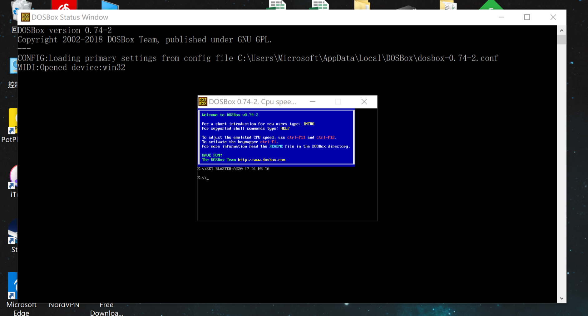 (3)下面是用win10 dosbox下运行的 由于我的电脑是超过2k的分辨率2736x1824,显示dosbox画面极小