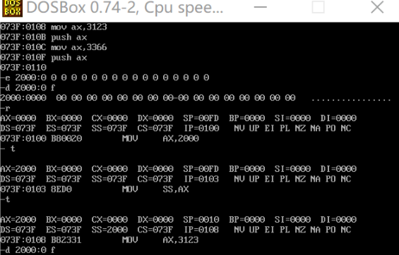 这里pop ax将栈上原来bx的值弹给了ax 所以ax的值和bx原来一样,再pop bx将最底下储存原来的ax值赋值给了bx 最终达到swap的交换效果,真是6啊