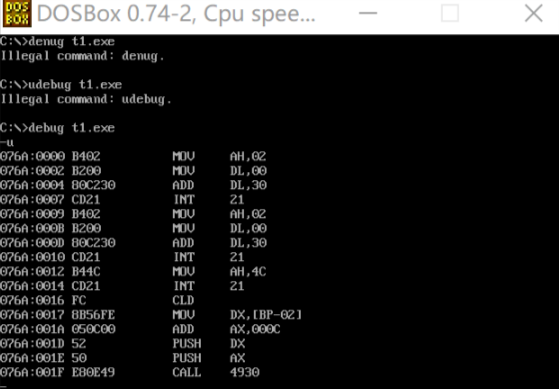 用u进行反汇编,可见与源代码大致一体