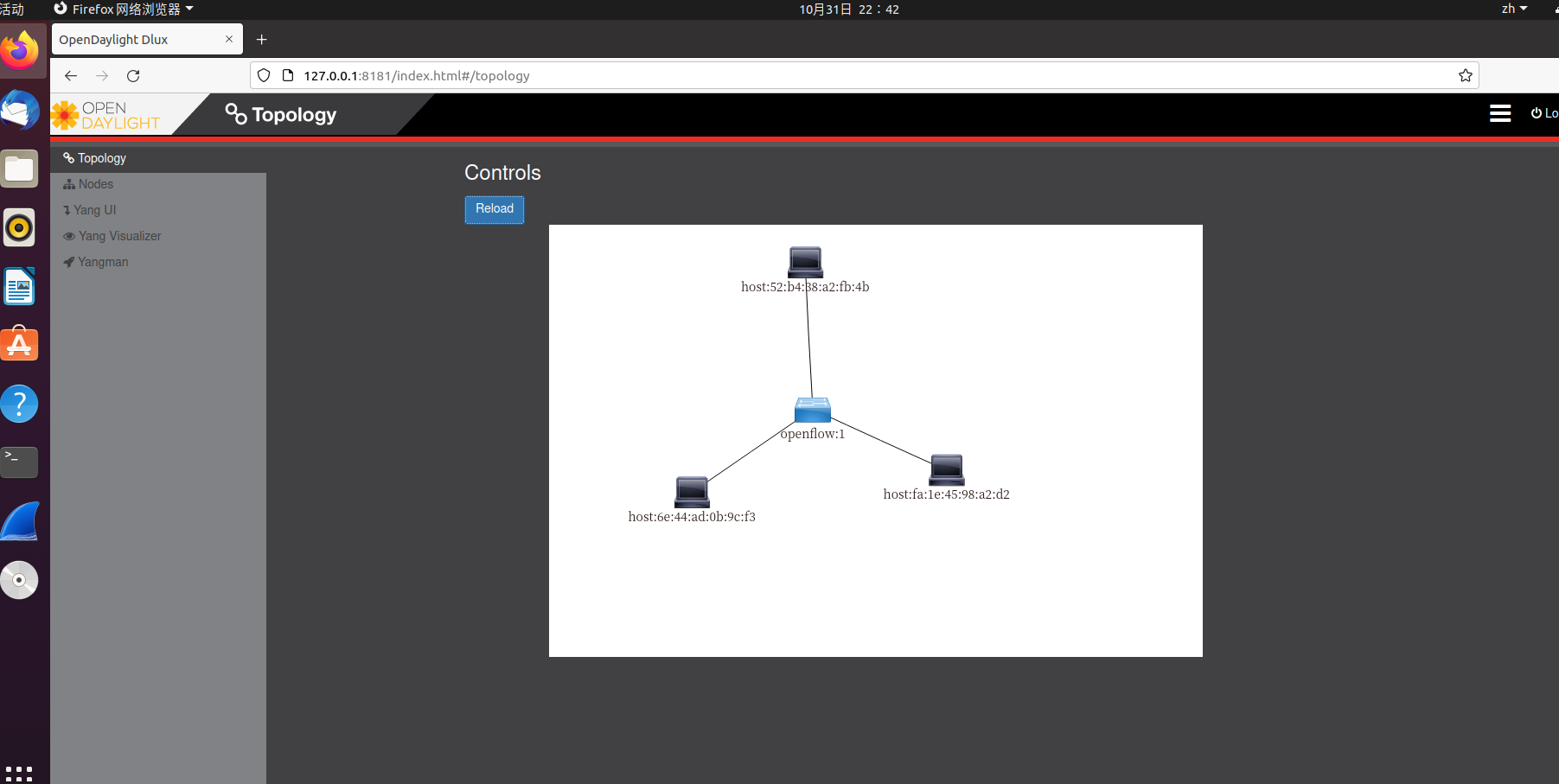 OpenDaylight或Ryu任选其一,编程实现查看前序VLAN实验拓扑中所有节点(含交换机、主机)的名称,以及显示每台交换机的所有流表项。