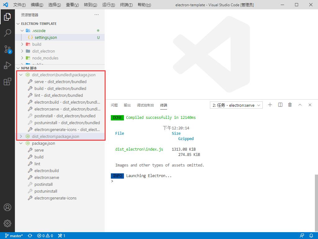 electron开发时,每次都从npm脚本处启动程序UI,但是VSCode会检测到很多子目录中package.json中的脚本,但是这些并不是我需要的;