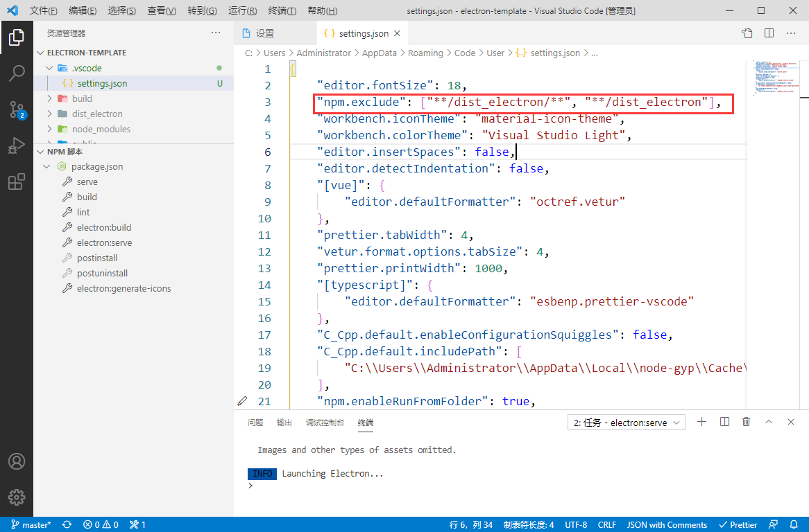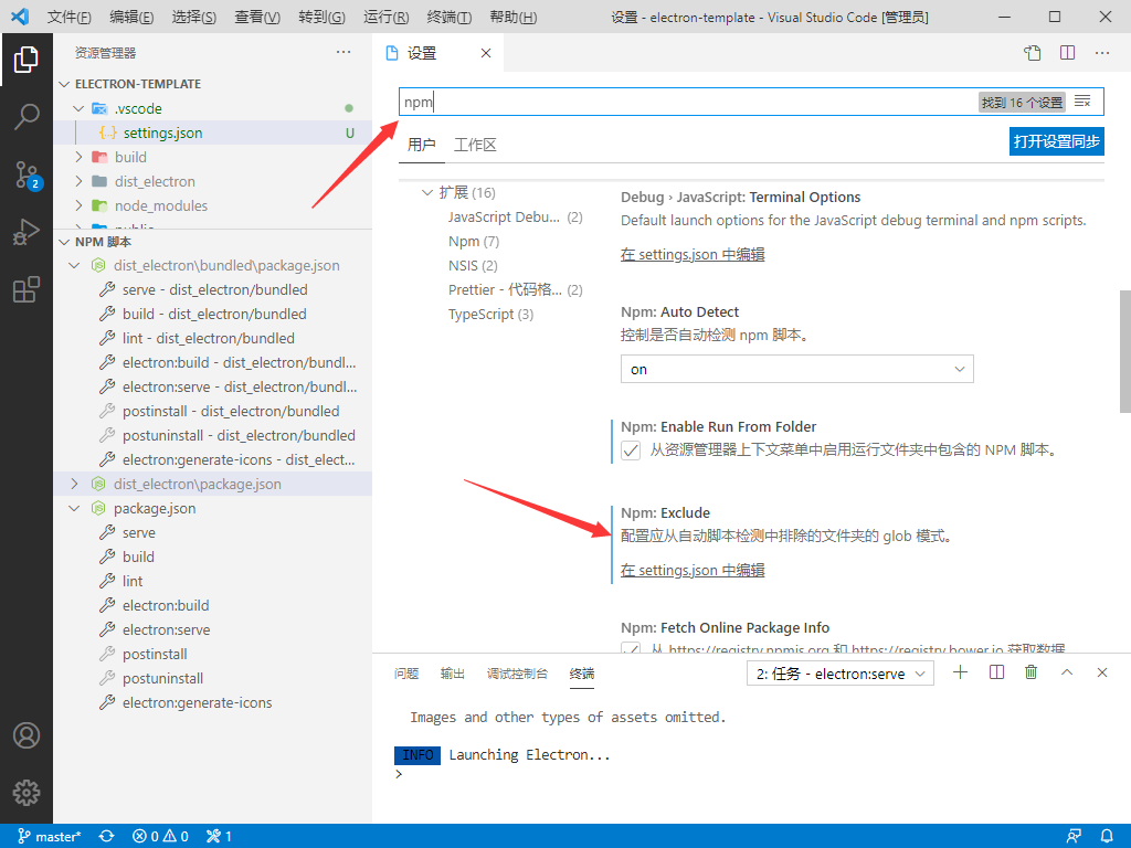 "npm.exclude": [ "**/dist_electron/**", //排除dist_electron子目录中的package.json "**/dist_electron" ////排除dist_electron目录中的package.json ]