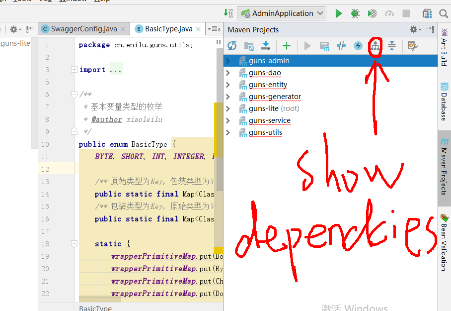 在idean中maven库的依赖关系可以在maven project 视图中工具栏的依赖按钮查看