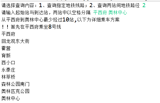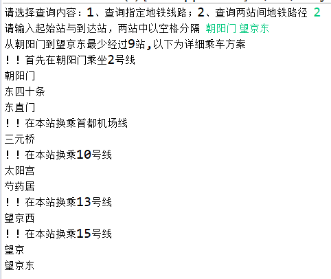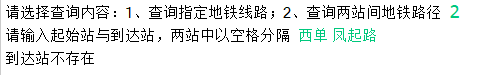 System.out.print("请选择查询内容:1、查询指定地铁线路;2、查询两站间地铁路径 ");