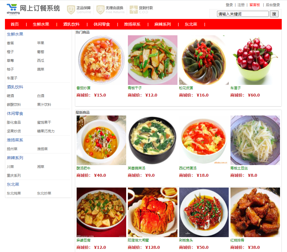 用户登录注册,查看商品,提交订单,然后留言,查看购物车,购买商品等等。管理员添加商品,管理用户,添加类目,管理留言等等。前端技术