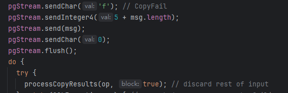 显而易见,向后端发送copyIn结束指令,底层如下: