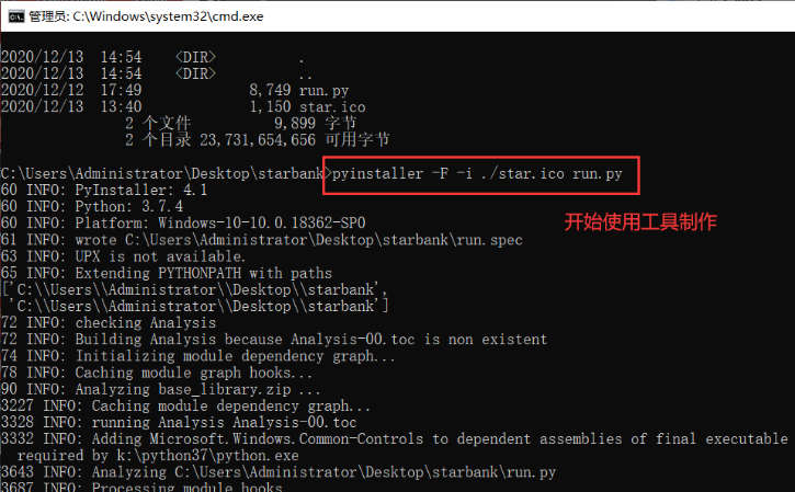 pyinstaller -F -i ./star.ico run.py pyinstaller -F -w -i ./star.ico run.py # -w是隐藏cmd窗口
