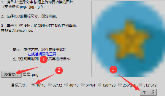 - 使用 ICO 透明图标工具转换图片尺寸 :