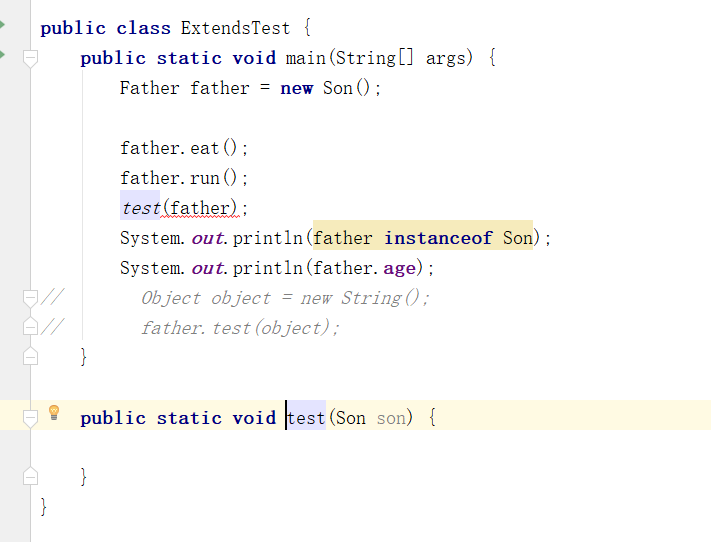 father instanceof Son 输出true,但是作为Son对象参数却报错了。那这个father到底是什么鬼东西?总而言之就是动态绑定(编译看左边,运行看右边)。