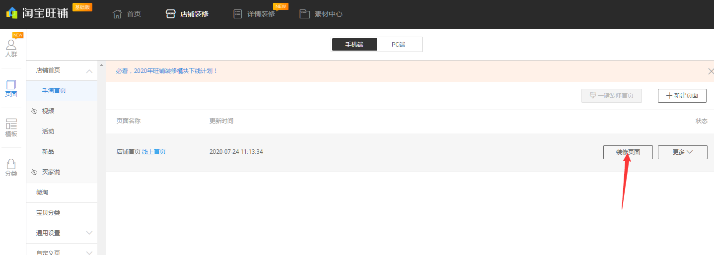 5.复制得到的链接,打开卖家后台-店铺管理-店铺装修-手淘首页装修-装修页面