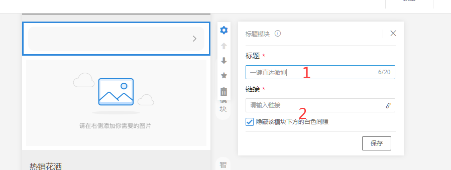 7.在标题输入框输入:“一键直达微博”,链接栏输入刚才生成的链接,点击保存