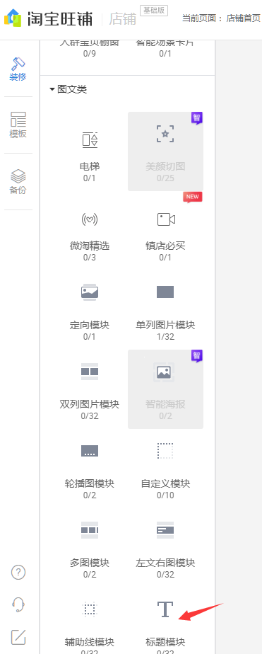 6.拖拽左侧的图文类分类下标题模块或者自定义模块
