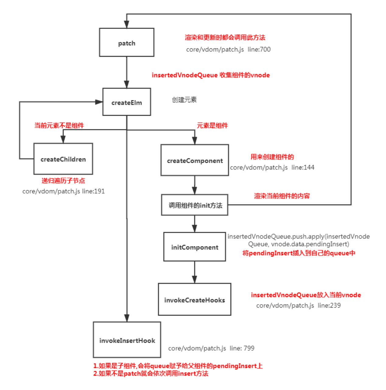 const insertedVnodeQueue = [] // 定义收集所有组件的insert hook方法的数组 // somthing ...