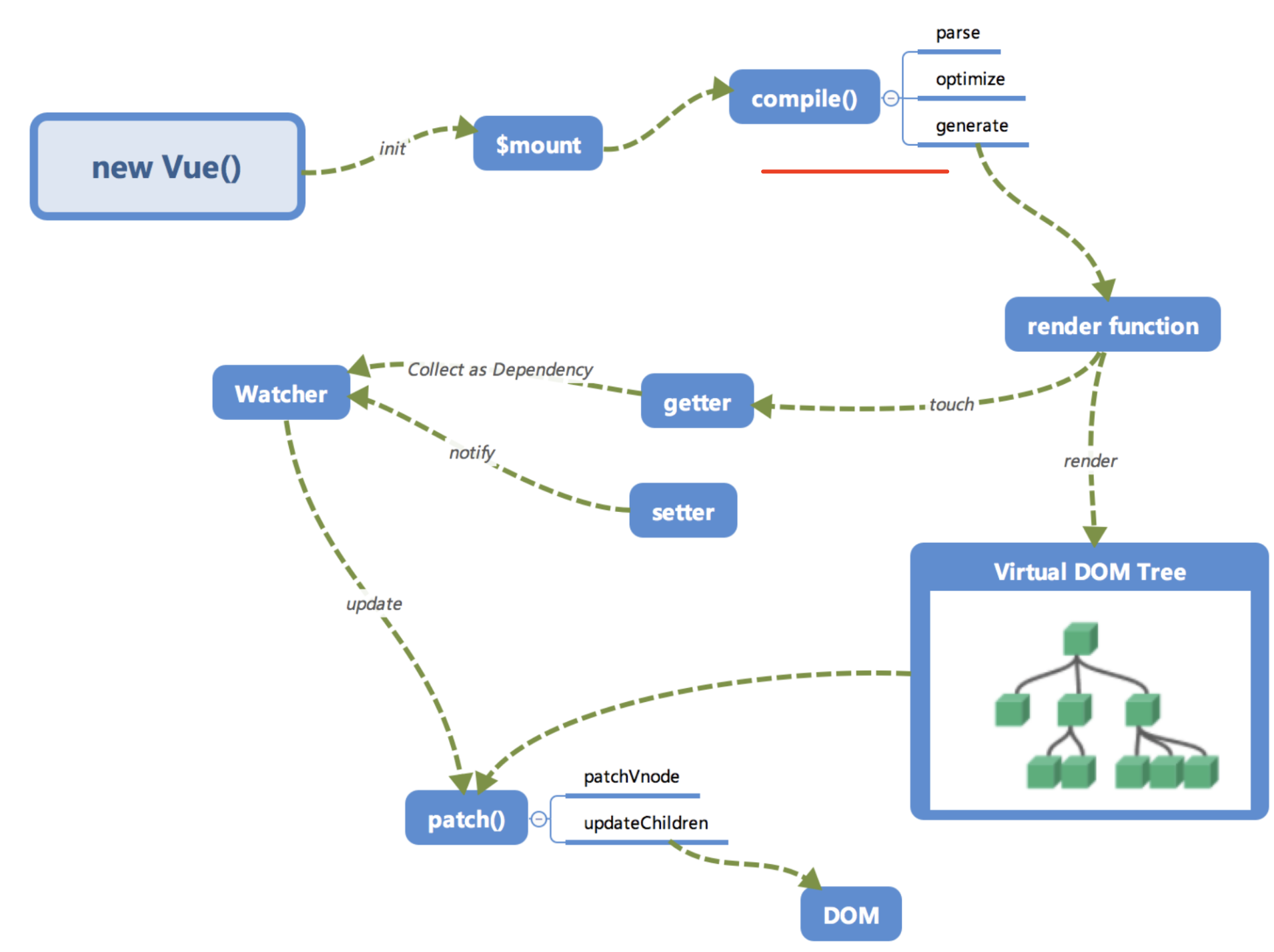 简单说,Vue的编译过程就是将template转化为render函数的过程。会经历以下阶段: