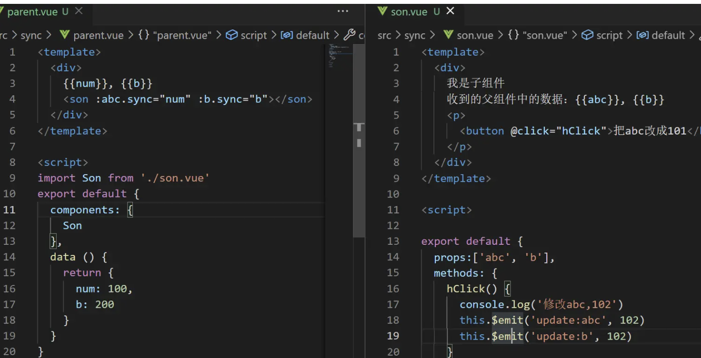 <Son :a.sync="num" :b.sync="num2" />