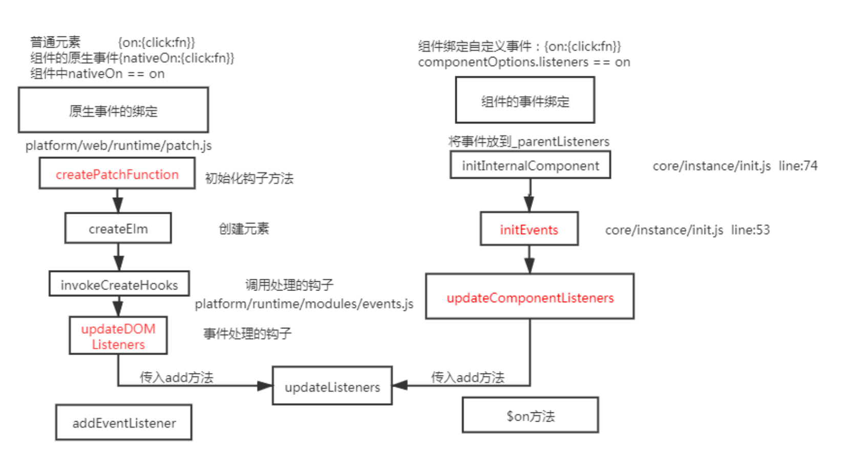 - 会遍历当前平台下相对的属性处理代码,其中就有 updateDOMListeners方法,内部会传入add方法