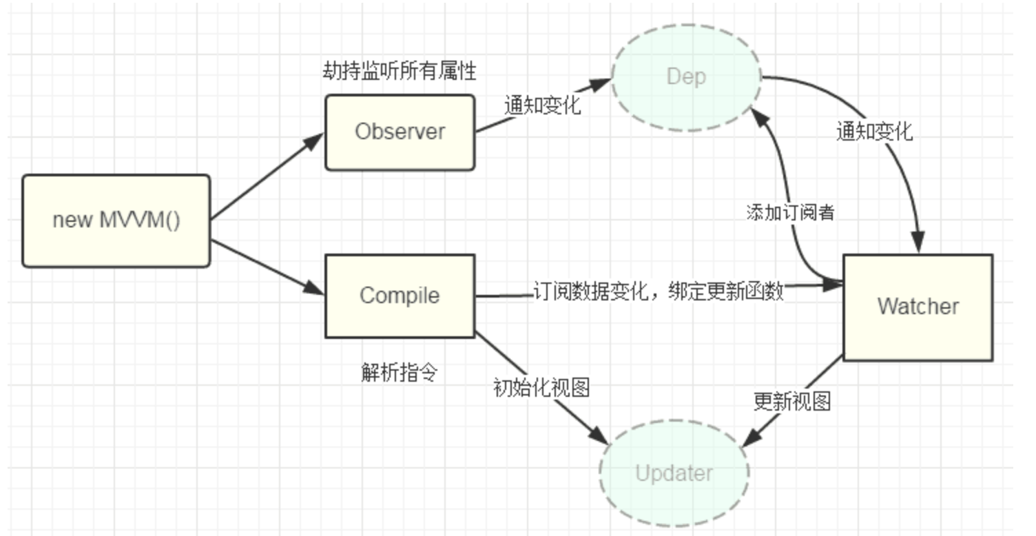 我们还是以Vue为例,先来看看Vue中的双向绑定流程是什么的