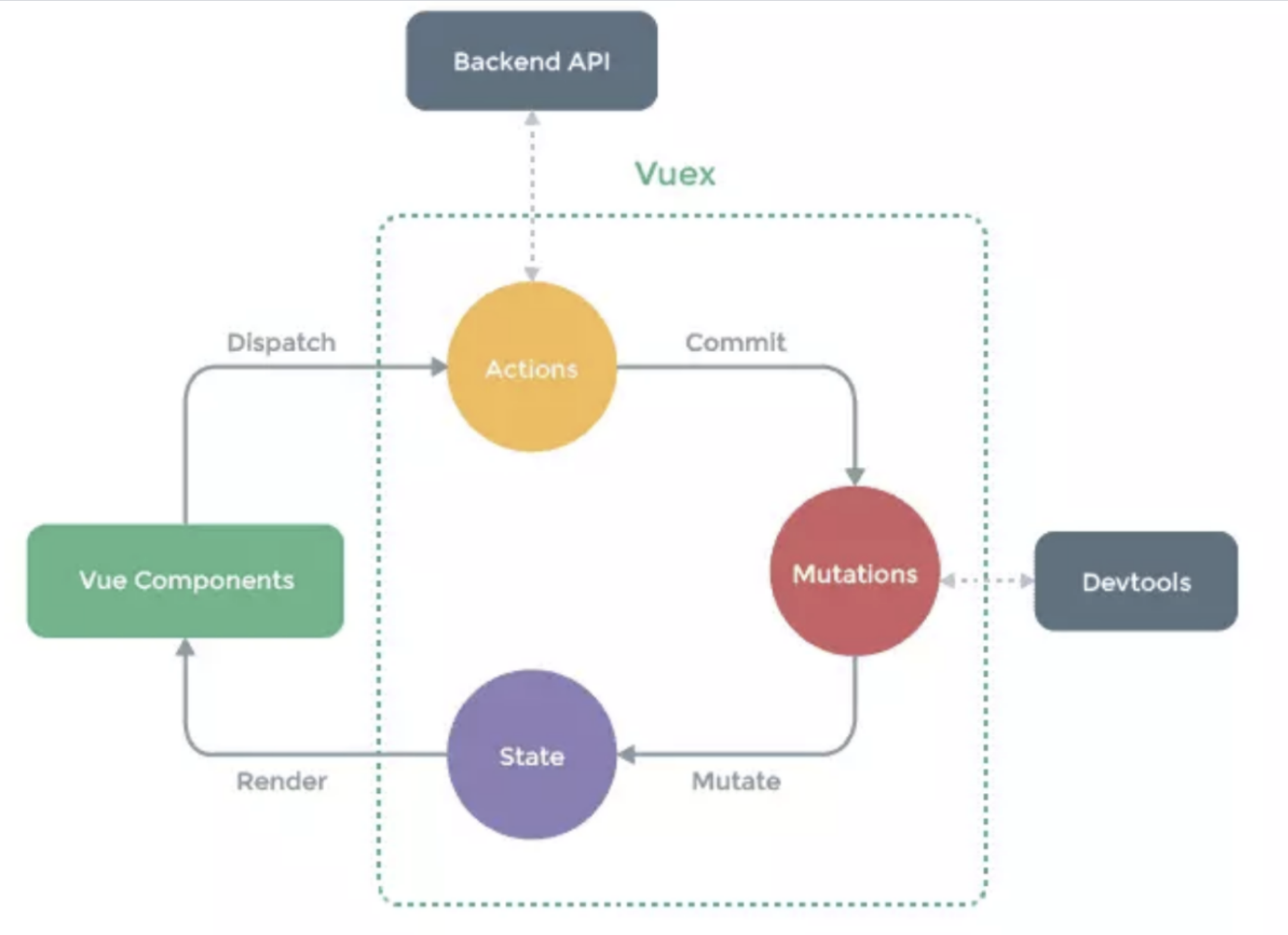 Action,Action再触发Mutation`。 - 基于流程顺序,二者扮演不同的角色: