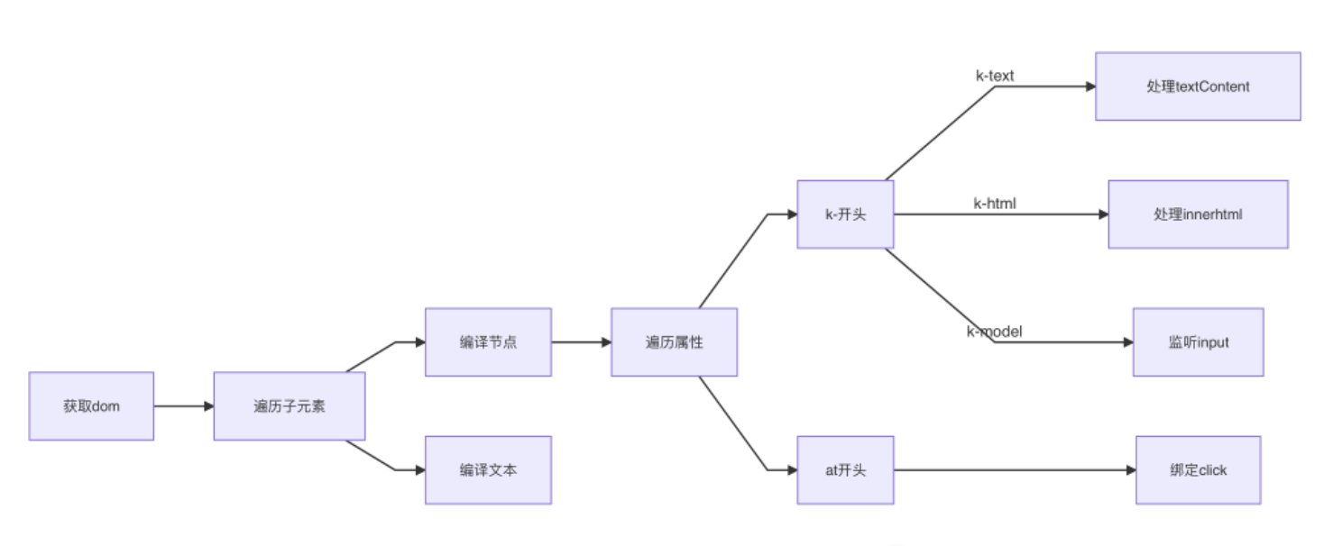 对每个元素节点的指令进行扫描跟解析,根据指令模板替换数据,以及绑定相应的更新函数
